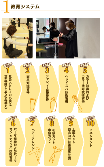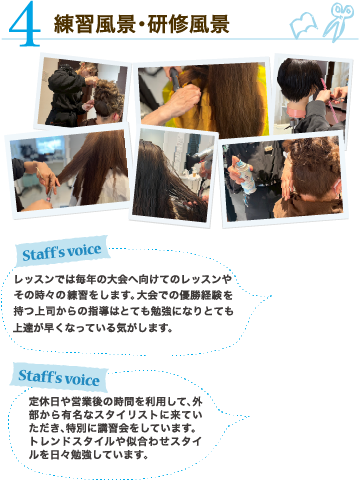 パーマ技術は各コンテストで優秀な成績を収めているのでレッスンをしながらコンテストも同時に参加してより確実な技術を習得しています。