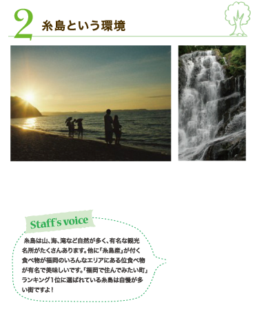 糸島は西に唐津、東に福岡という位置に在ります。福岡の有名な天神からは20分。JRの電車では30分の所に位置します。糸島は以前農業が中心の所でしたが、今は福岡のベッドタウンとなっています。