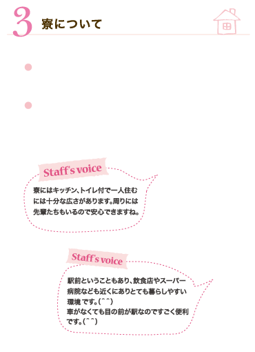 安心して仕事に打ち込めるよう自社で寮を用意しています。